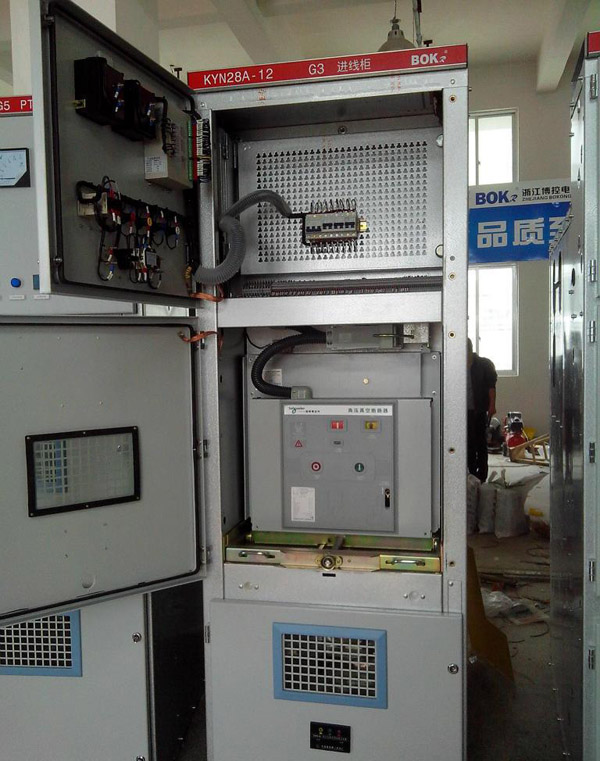 KYN28(GZS)型戶內(nèi)金屬鎧裝抽出式開(kāi)關(guān)設(shè)備(以下簡(jiǎn)稱開(kāi)關(guān)設(shè)備)。該開(kāi)關(guān)設(shè)備系3-10KV三相交流50Hz單母線分段系統(tǒng)的成套配電裝置。主要用于發(fā)電廠、中小型發(fā)電機(jī)送電、工礦企事業(yè)配電以及電業(yè)系統(tǒng)的二次變電所的受電、送電及大型高壓電動(dòng)機(jī)起動(dòng)等,實(shí)行控制保護(hù)、監(jiān)測(cè)之用。具有防止帶負(fù)荷推拉斷路器手車(chē)、防止誤分合斷路器、防止接地開(kāi)關(guān)處在閉合位置時(shí)關(guān)合斷路器、防止誤入帶電隔室、防止在帶電時(shí)誤合接地開(kāi)關(guān)的聯(lián)鎖功能,既可配用VS1真空斷路器,也可配用ABB公司的VD4真空斷路器,是一種性能優(yōu)越的配電裝置。